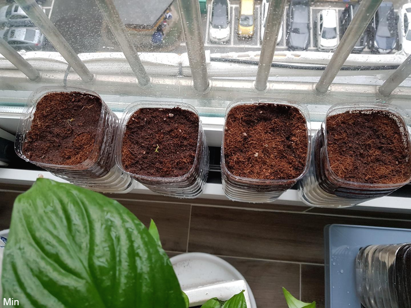 같은 날 싹이 튼 씨앗들만 이렇게 페트병 화분에 옮겨 심어 주었다.