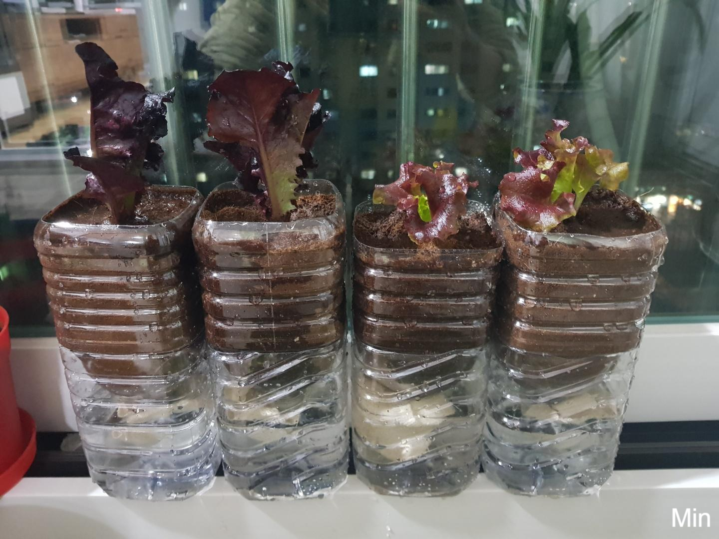요렇게 완성된 자동급수 화분으로 상추 모종을 심었다.