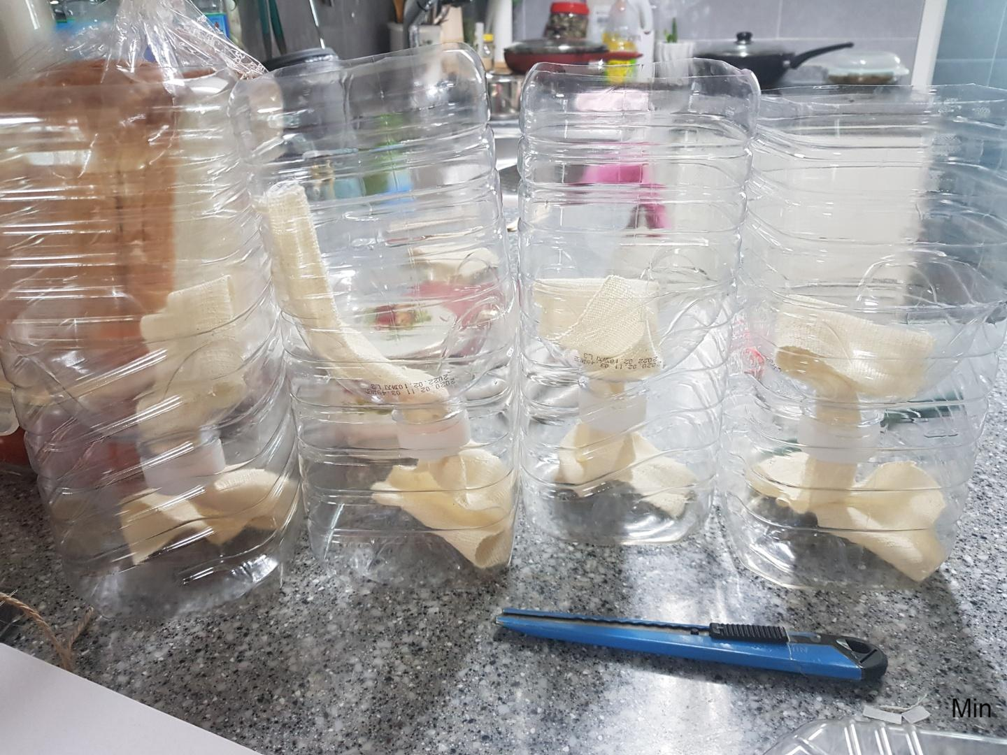 어떤 분은 뚜껑을 그냥 제거하고, 페트병 구멍에 거즈를 모두 채우시는 분도 계셨다~